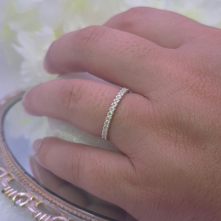 Seu design slim e moderno cria um efeito de brilho contínuo, perfeito para quem ama composições delicadas ou deseja adicionar um toque de sofisticação extra à sua aliança principal. Deixe sua luz brilhar com esta peça atemporal.