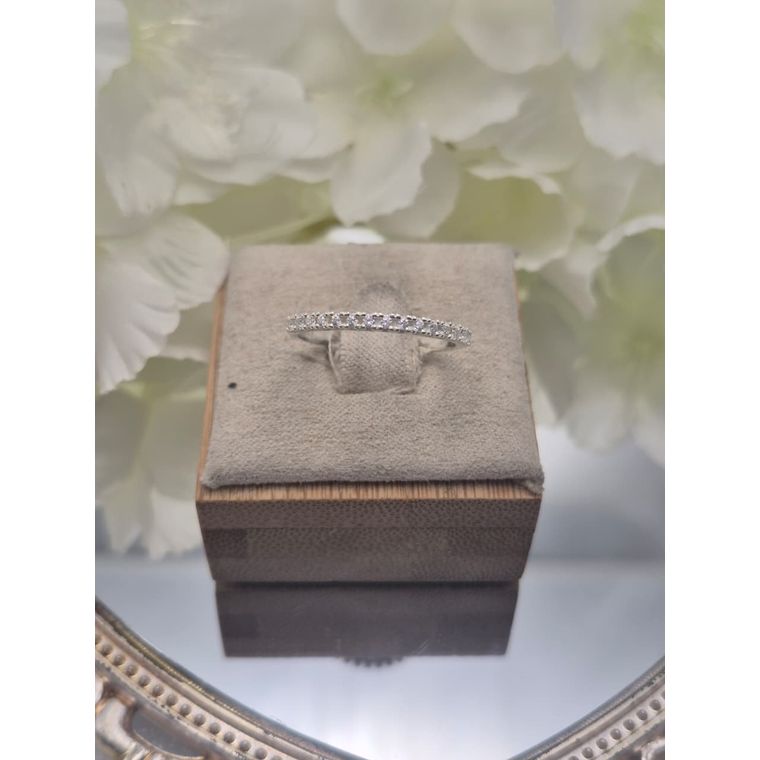 Anel cravejado com pedras zircônias 1,25mm. Modelo Meia aliança.
