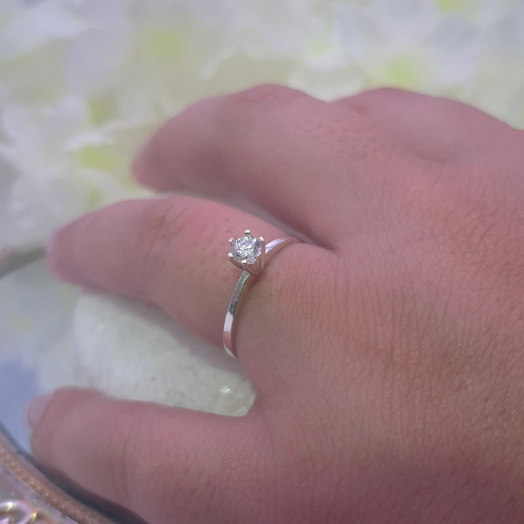 Anel solitário, pedra central 4mm redonda, garra alta.