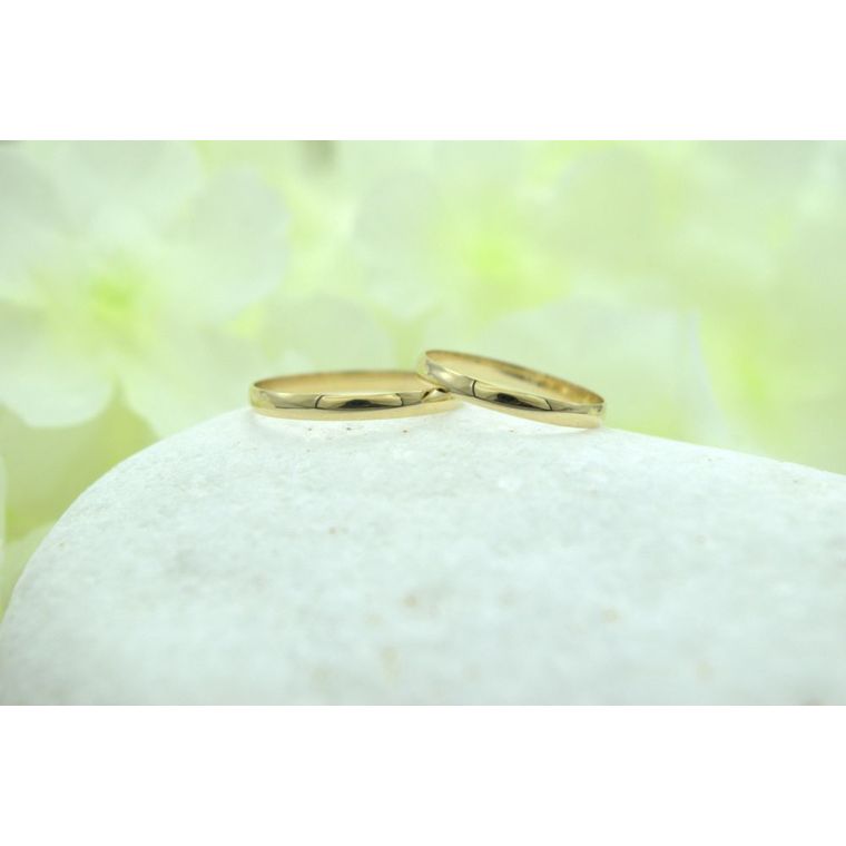 Modelo Clássico. Par de alianças modelo tradicional, abaulado por fora e reto por dentro.